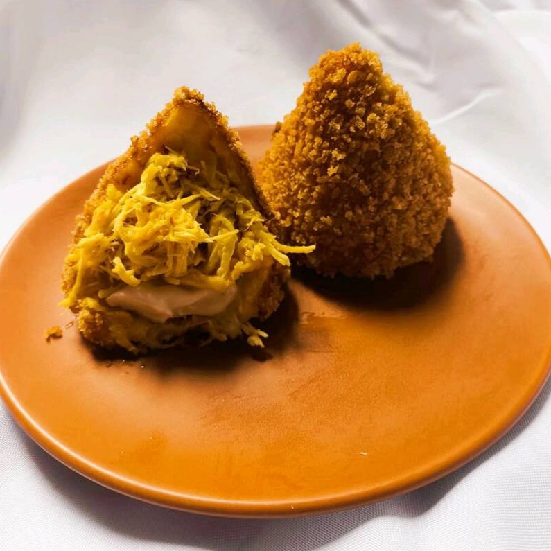 Escolha a coxinha que mais combina com o seu gosto: frango desfiado com Catupiry, recheada com frango suculento e o cremoso Catupiry, ou a costela desfiada com Catupiry, com aquele sabor irresistível e carne macia. Ambas envoltas em uma massa crocante e dourada.