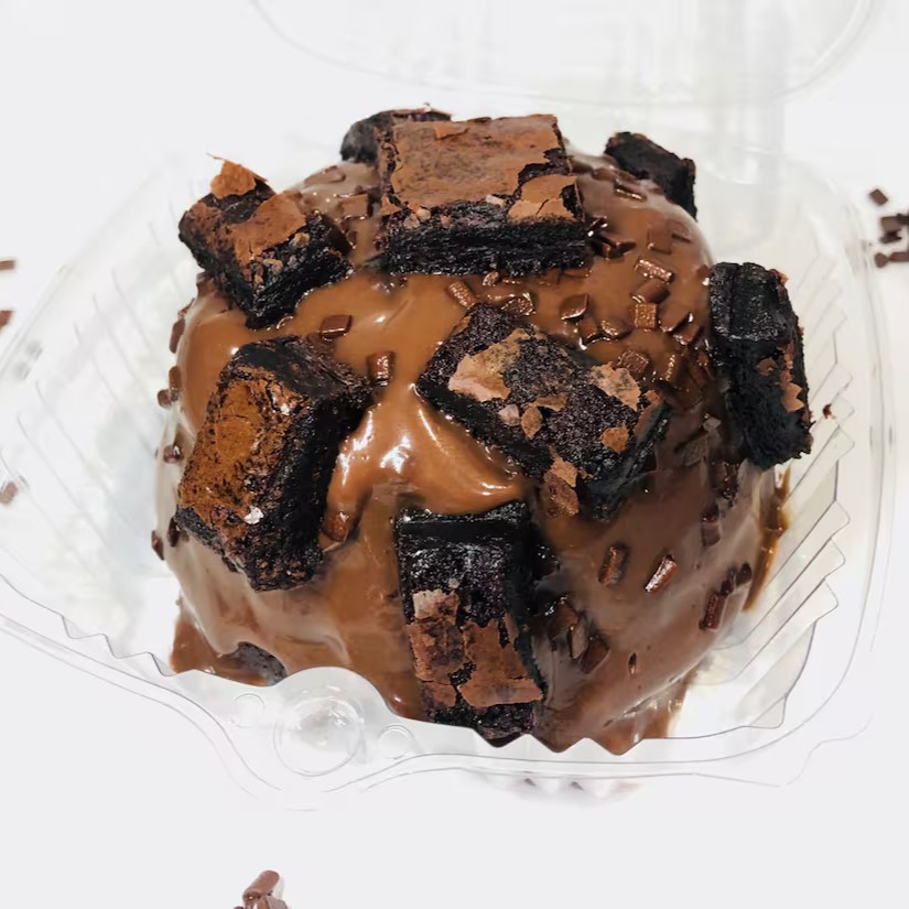 Um Chocobrownie incrível, rodeado por pedaços crocantes de brownie e envolvido em uma camada de granulado. O bolo é feito com uma massa de chocolate rica e úmida, recheado com um delicioso brigadeiro cremoso. Uma combinação perfeita de sabores e texturas que vai agradar a qualquer amante de chocolate!
