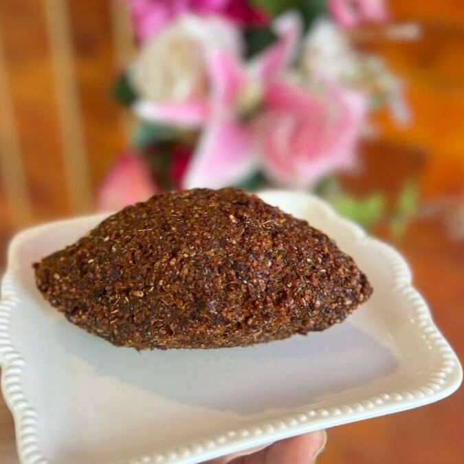 Kibe tradicional de carne e trigo, bem temperado, frito até dourar, crocante por fora e macio por dentro.