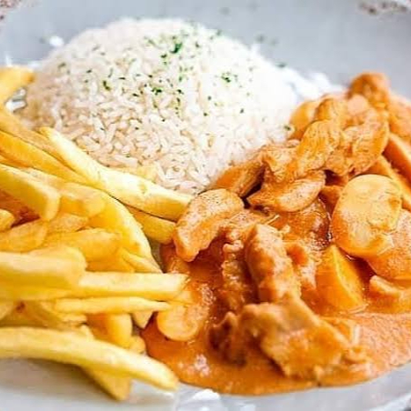 Estrogonofe De Frango Com Arroz E Batata Frita