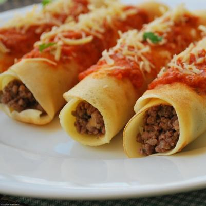Panqueca De Frango Ao Molho Com Arroz E Macarrão
