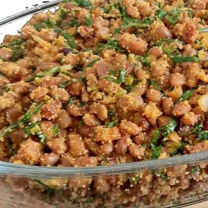 Feijão tropeiro tipo carioca, temperado com couve, alho, cebola, charque e linguiça calabresa.