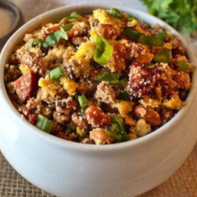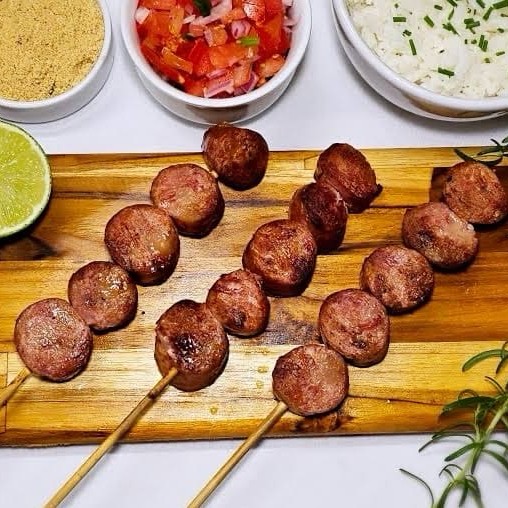 Espetinho de Toscana + 150g de Farofa + 150g de Feijão tropeiro & 150g de Vinagrete