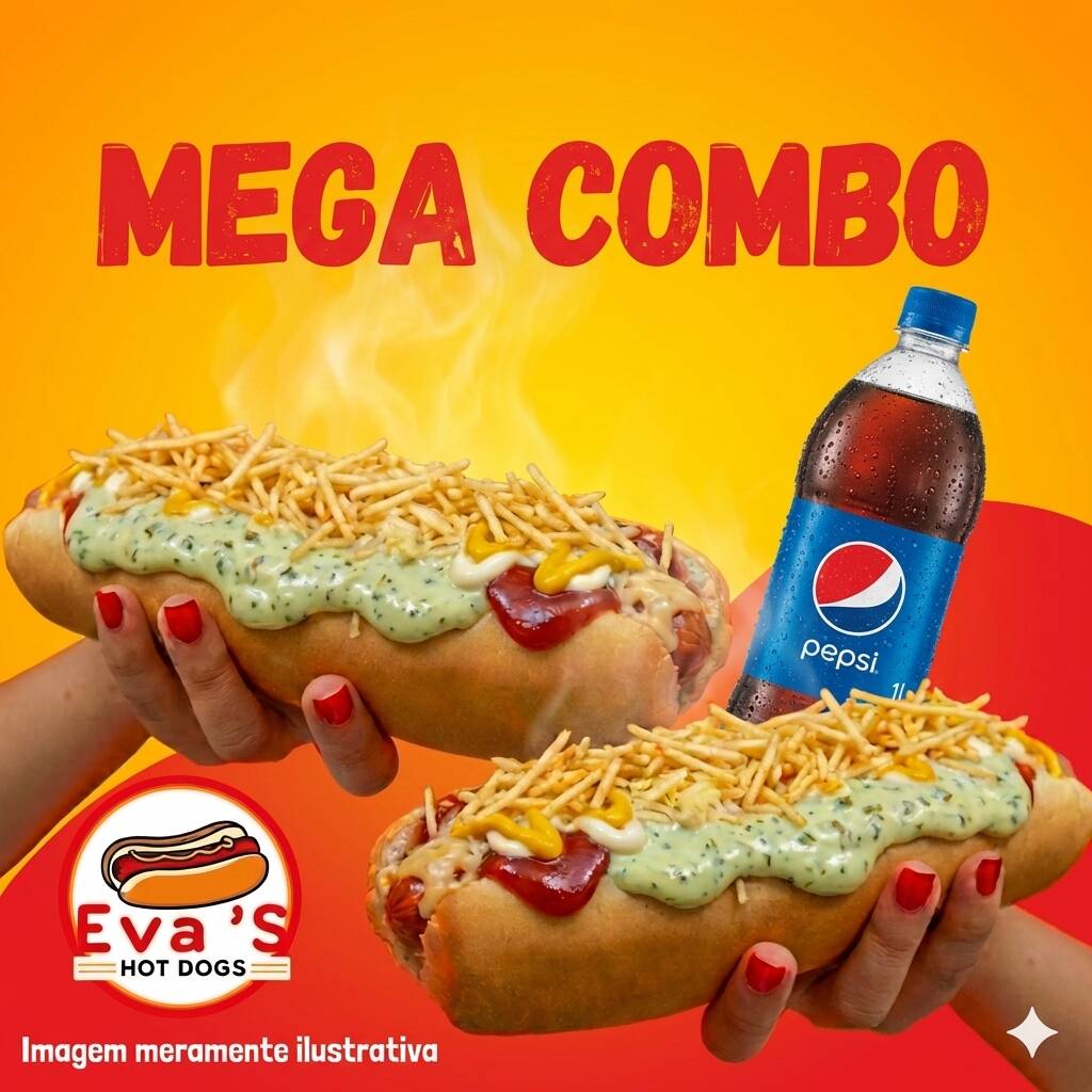 2X MEGADOGS (São 2 DOGÃO caprichados com aquela maionese verde especial + 1 Pepsi de 1 Litro geladinha. É muito sabor pra uma promoção só! 🌭🥤