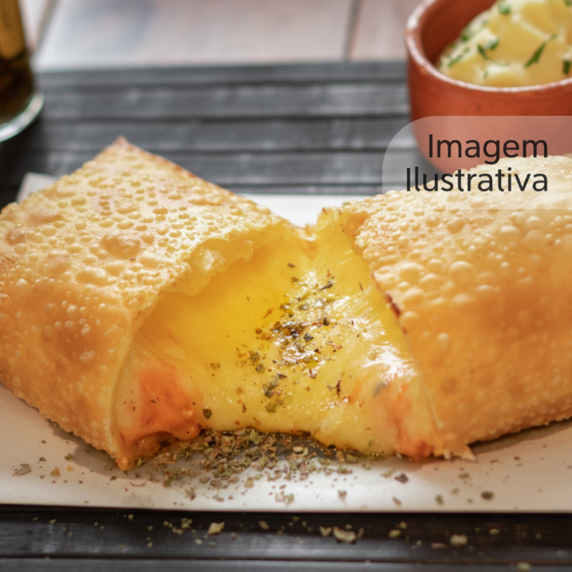 Recheio de queijo, presunto e orégano em um pastel crocante. Um clássico reinventado.