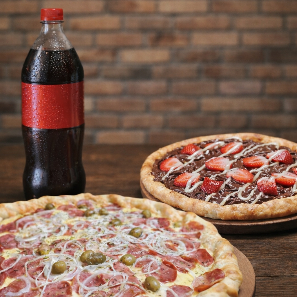 Pizza Familia + Pizza Média Sabor Doce + Refrigerante De Brinde