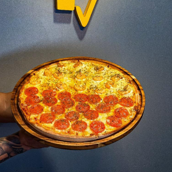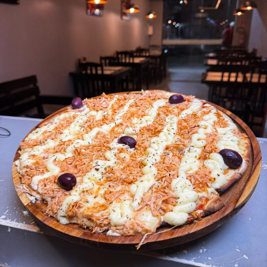 Pizza grande 8 fatias sabor frango c/Catupiry Original e calabresa + refri 1litro grátis