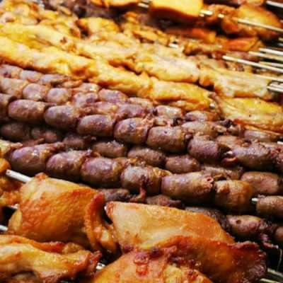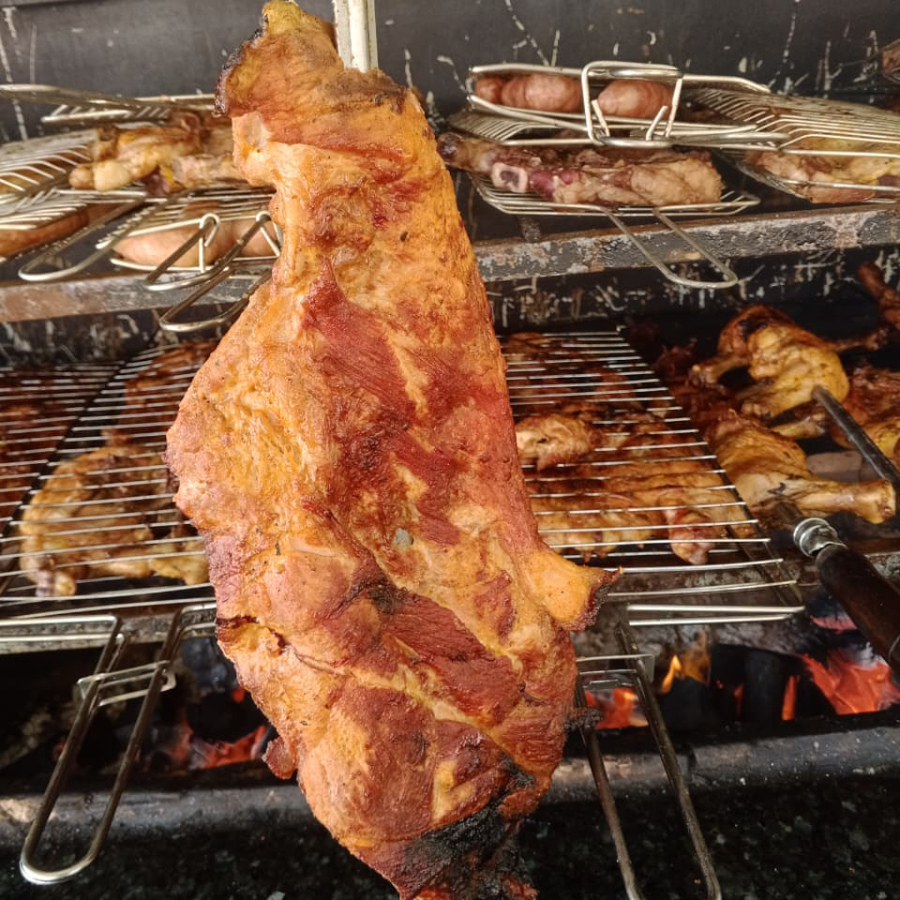 Acompanha 1 frango assado, 4 bistecas, 4 toscanas, quentinha de arroz, quentinha de feijão tropeiro, quentinha de macarrão, salada de maionese, batata assada, refrigerante de 2l