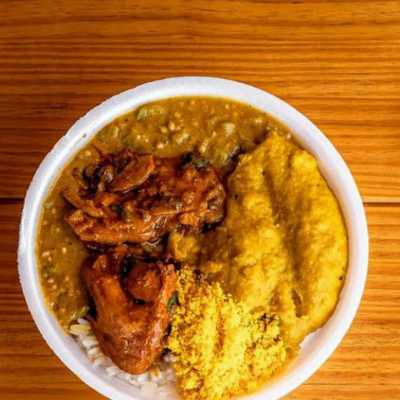 xinxim de frango, arroz branco ,vatapá ,caruru, feijão fradinho