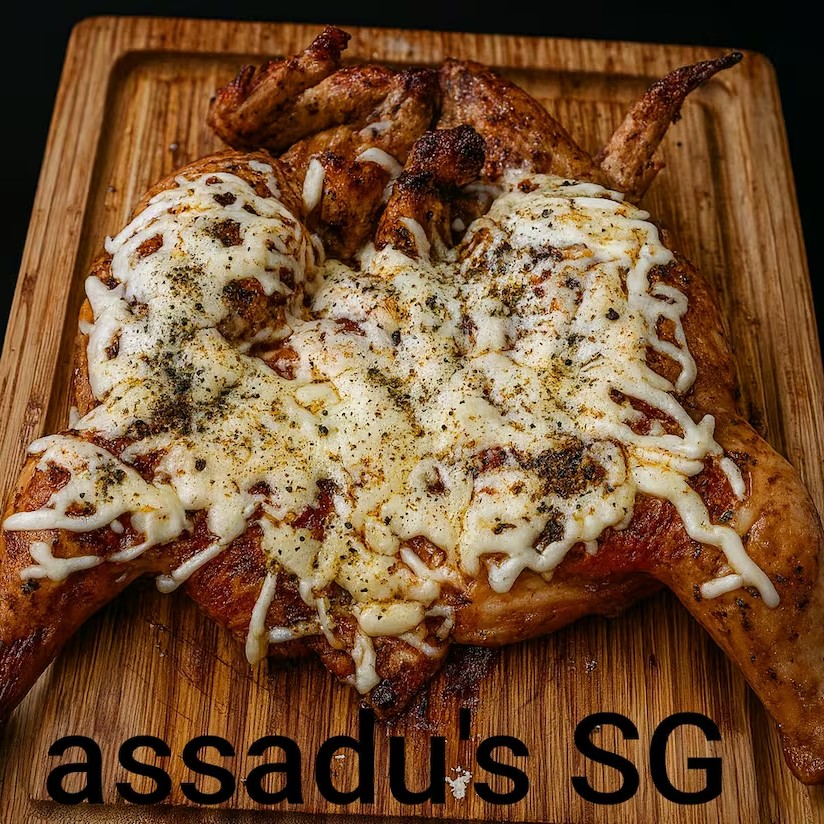 Delicioso Frango Grande, cuidadosamente temperado e marinado por um período de 3 dias para realçar o sabor. Este prato, pertencente à categoria 'Frango Assado Especial', é preparado com ervas finas selecionadas e um vinho de qualidade, envolvendo o frango em uma camada de sabor que é de dar água na boca. Uma experiência culinária única que promete satisfazer o paladar mais exigente.