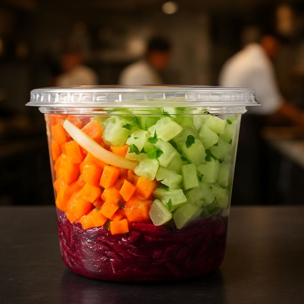 Porção Gg da nossa saladinha de legumes. Feita com beterraba, cenoura e chuchu selecionados e fresquinhos, especialmente temperados e super saborosos!