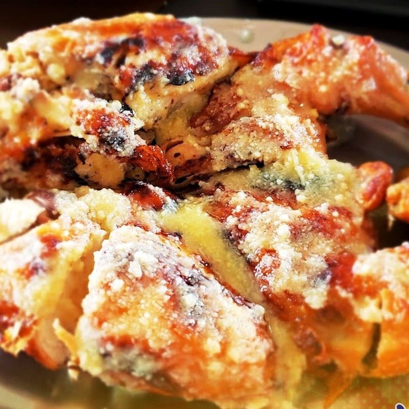 Nosso frango super famoso com molho de queijo parmesão e manteiga + uma porção de farofa de miúdos, nosso prato mais conhecido! Aproveite este super desconto e adicione outros acompanhamentos