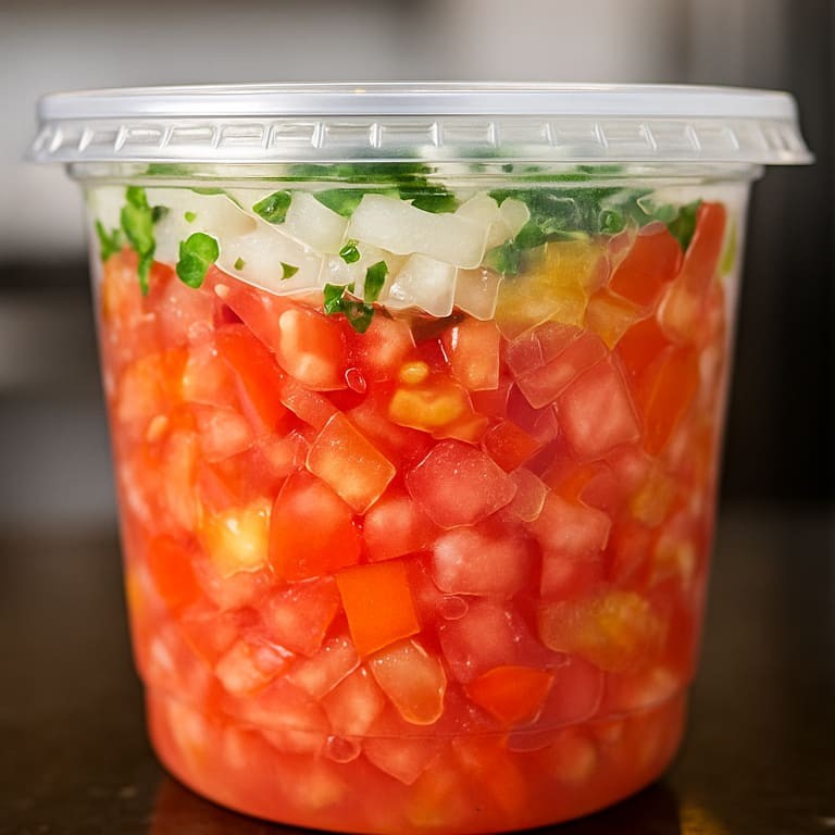 Porção Gg da nossa vinagrete fresca e vibrante, perfeita para acompanhar seu frango! Feita com tomates selecionados, cebola picada e aquele tempero secreto que só o Frango do Moura tem! Leve, refrescante e cheia de sabor!