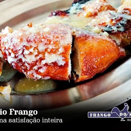 Super desconto + Brinde! Comprando este combo seu frango com molho de queijo parmesão e manteiga vem com 5 Acompanhamentos: Arroz branco, feijão tropeiro, farofa de miúdos, vinagrete e batata frita! Refrigerante 1 Litro Grátis!