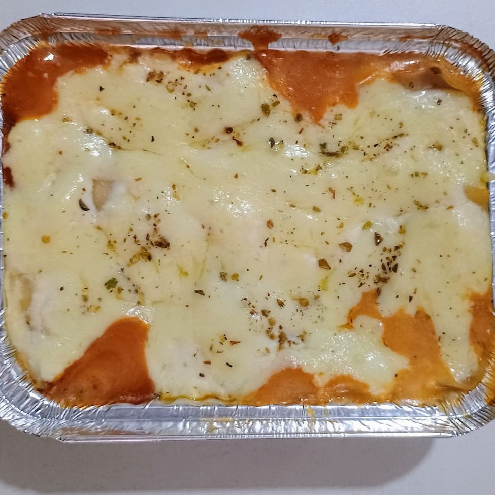 Deliciosa lasanha caseira, sem conservantes, montamos na hora. Composta por camadas de molho vermelho, molho branco, massa, recheio de frango com milho, queijo e orégano (aprox 500gr) * Montamos na hora para que chegue fresquinha até você. Tempo de preparo uns 35min