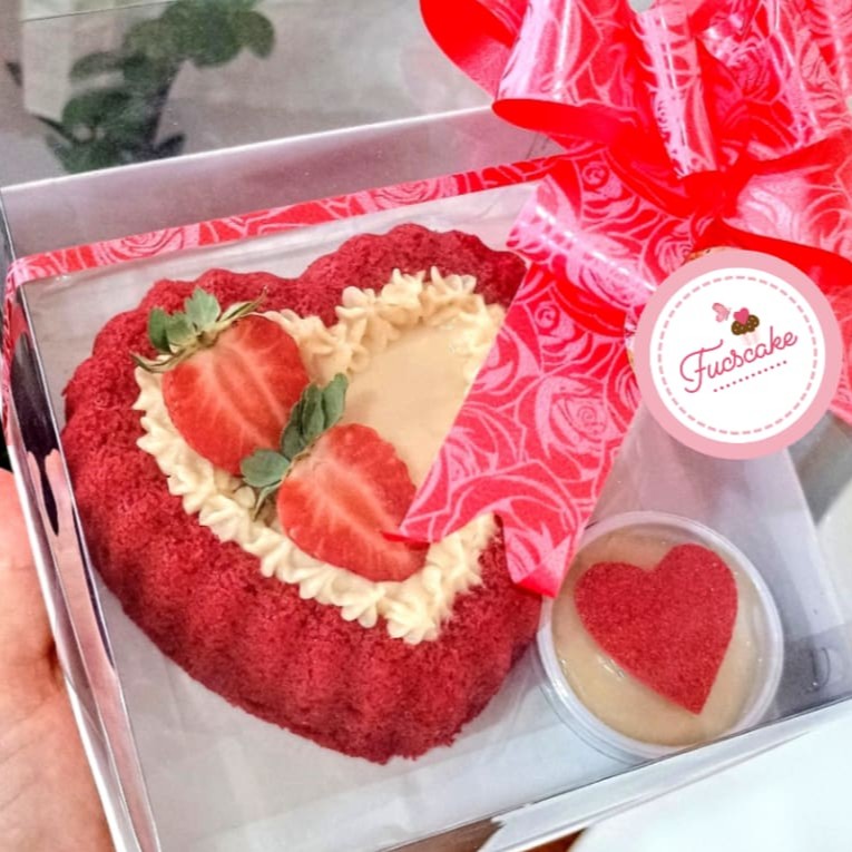 Deliciosa massa amanteigada na versão Red Velvet com recheio de creme de Ninho ou chocolate com creme de chocolate meio amargo, decorados com morangos frescos. Acompanha uma linda embalagem presenteável para surpreender quem vc ama! ( Bolo de 13cm com aprox 250gr, acompanha recheio extra de aprox 30gr ). Serve até duas pessoas.