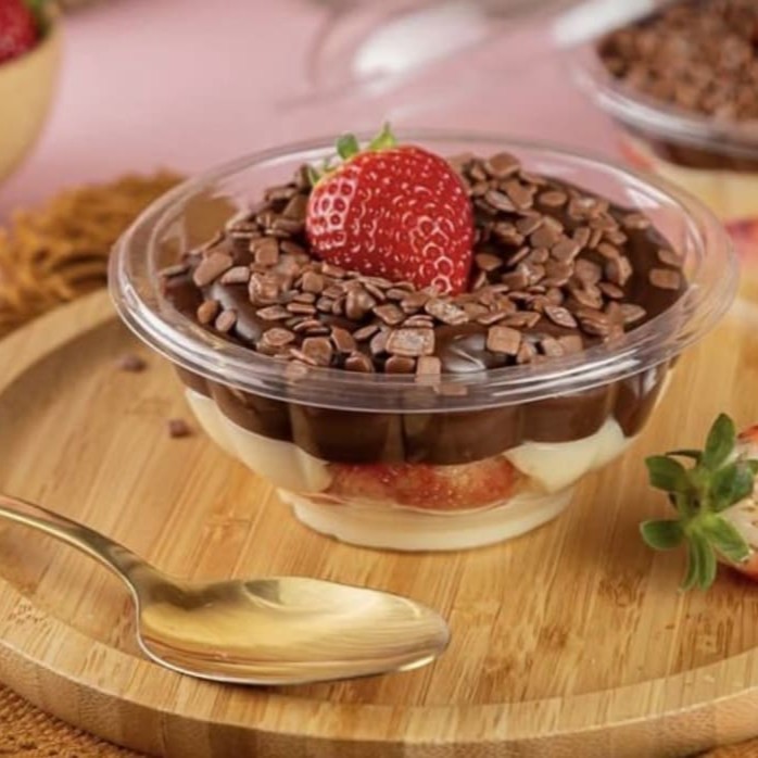 Deliciosa combinação de morangos frescos com brigadeiro cremoso de Ninho e creme de chocolate meio amargo. Para decoração utilizamos chocolate granulado em flocos e morango. Serve 1 pessoa