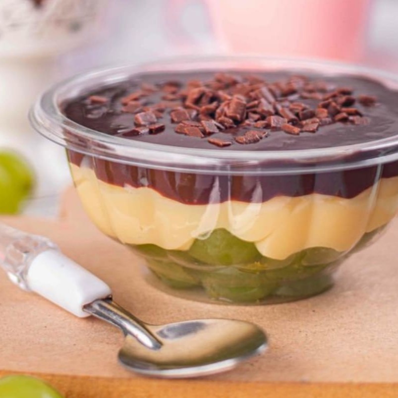 Deliciosa combinação de uvas frescas sem caroço, com brigadeiro cremoso de Ninho e creme de chocolate meio amargo. Para decoração utilizamos chocolate granulado em flocos e uva. Serve 1 pessoa