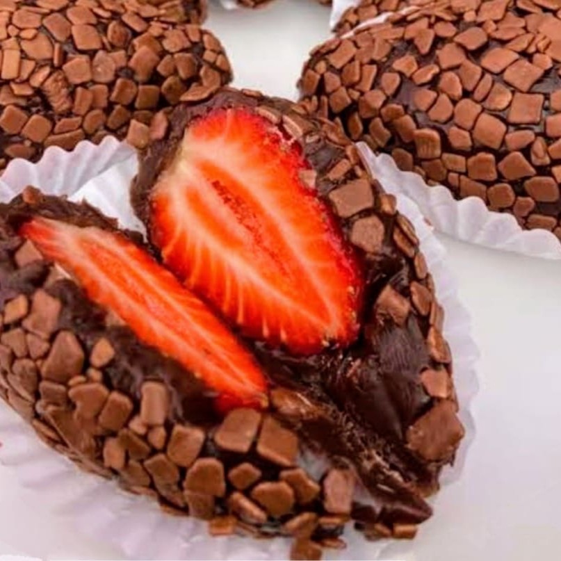 Deliciosa combinação de morango fresco e brigadeiro. Temos a opção de brigadeiro cacau 50% ou brigadeiro de Ninho. Escolha o seu favorito!! (Peso aprox 55/60gr)