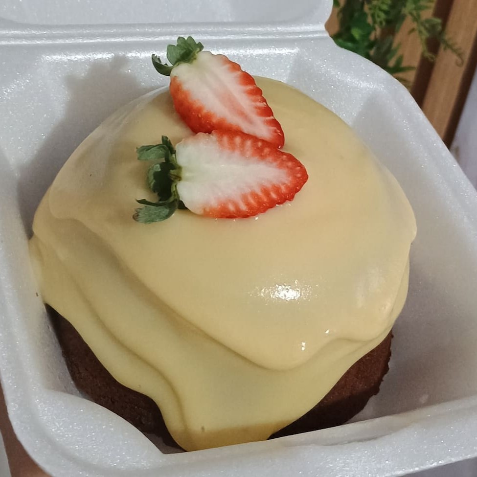 Deliciosa massa amanteigada e molhadinha a sua escolha (Baunilha ou Chocolate), recheado com creme de Ninho e morangos frescos picados, coberto com recheio de creme de Ninho. E para decoração utilizamos 1 morango fresco. Bolo de 12cm, serve até 2 pessoas.