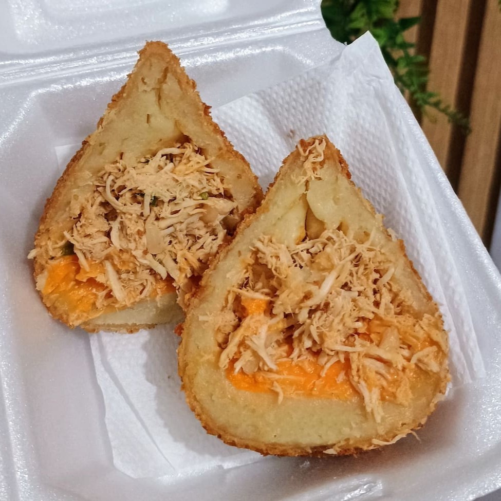 Deliciosa coxinha de frango com queijo cheddar, bem temperadinha, empanada com farinha panko mantendo assim uma super crocância! Fritamos na hora do pedido, pesa aprox 140gr