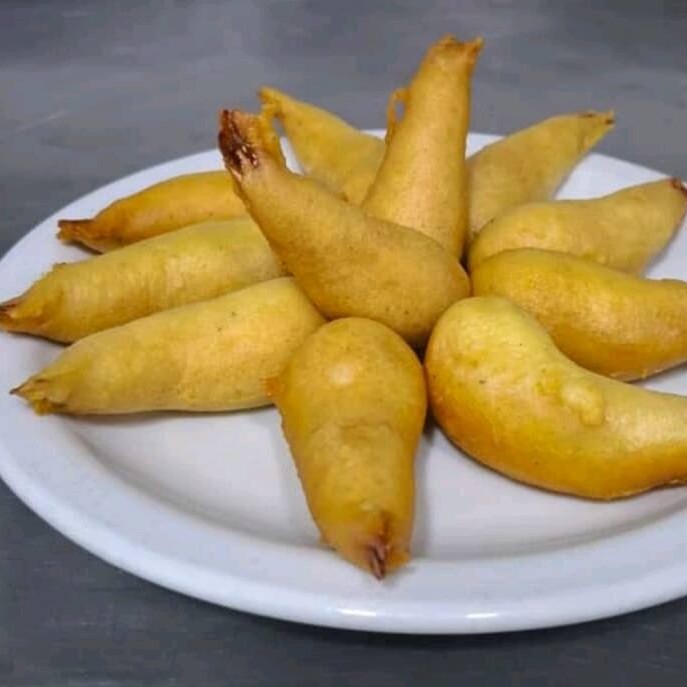 Delicioso camarão envoto em um delicioso polme fino e deliciosamente frito.