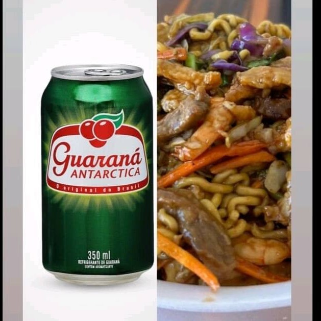 Guaraná em lata 350lm + yakissoba de mista carne e frango de 400 gm.