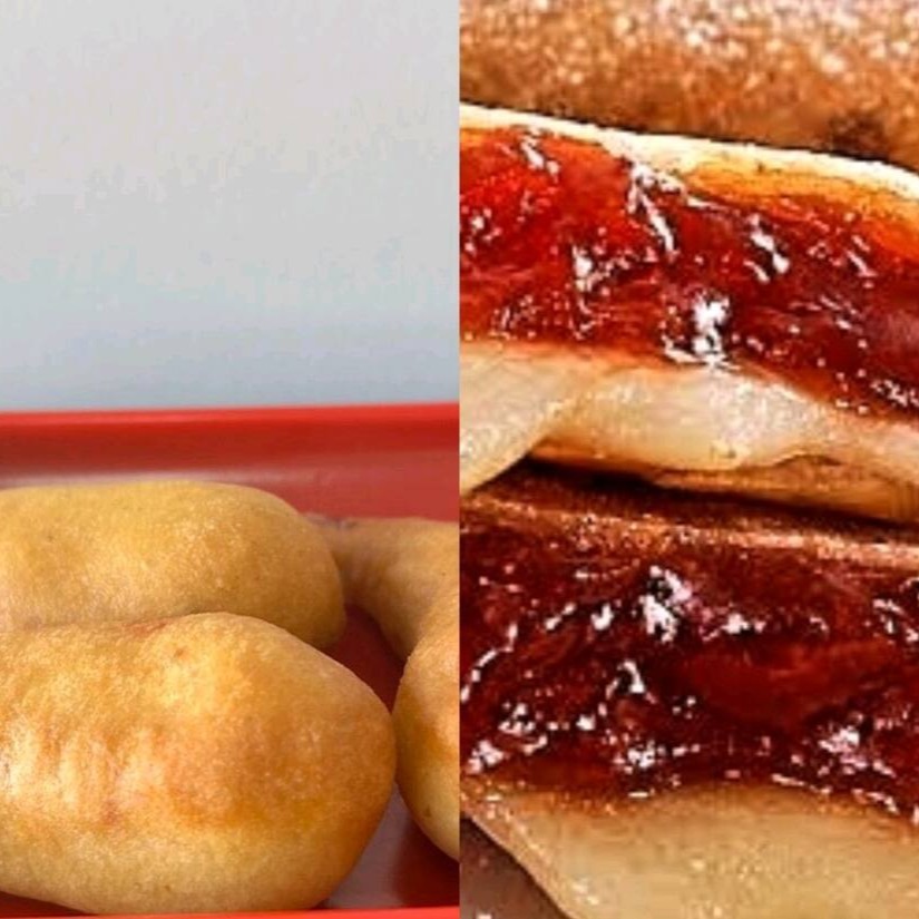 Delicioso rolinho recheado com queijo derretido e goiabada doce.