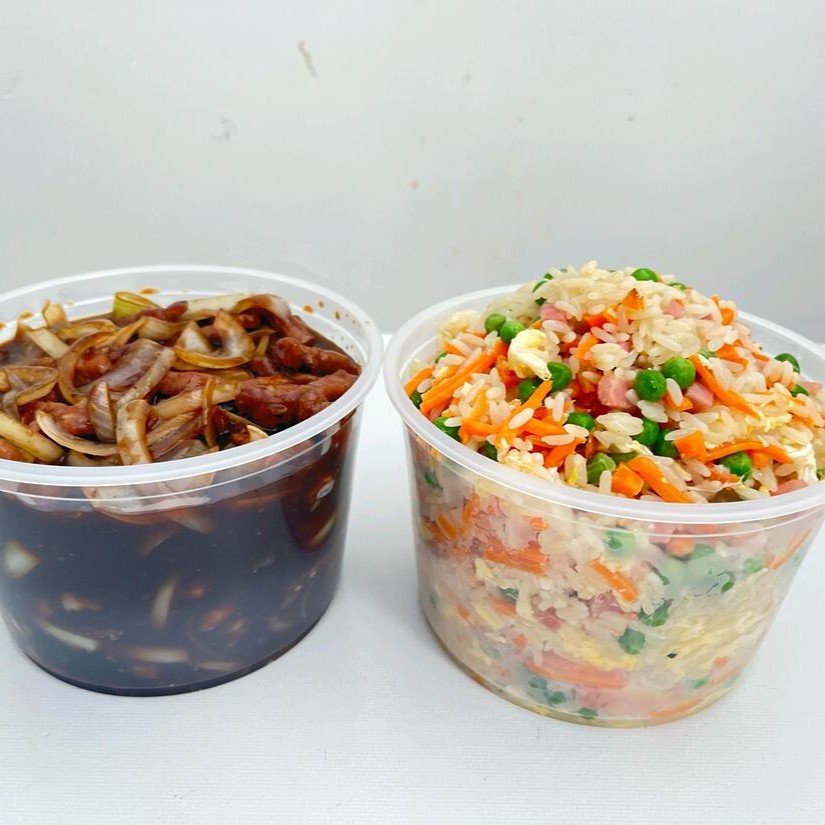 Carne Desfiada com Cebola 500g +Arroz Chop Suey 500g