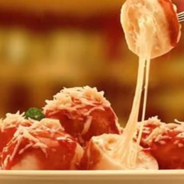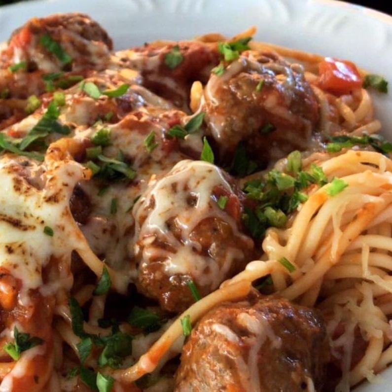 Deliciosa combinação do spaghetti ao molho de tomate artesanal, servido com almondegas caseiras, finalizado com muçarela gratinada e salsinha picada.