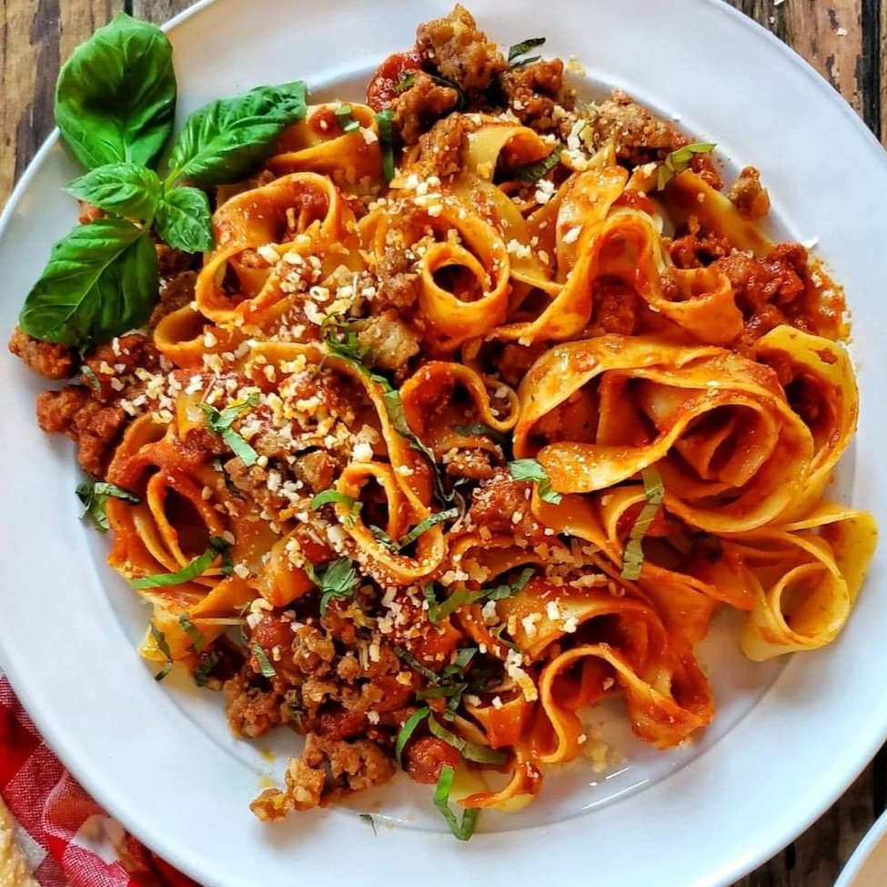Massa fresca pappardelle, servida com ragu de filé mingon ao molho de tomate artesanal + 1 coca cola lata (350ml).