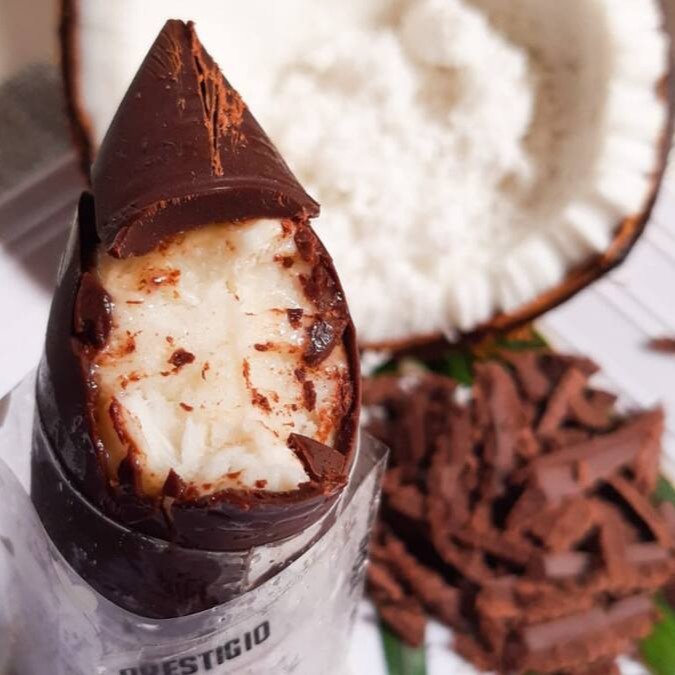 Casquinha De Chocolate Meio Amargo, Recheio De Puro Coco Natural.