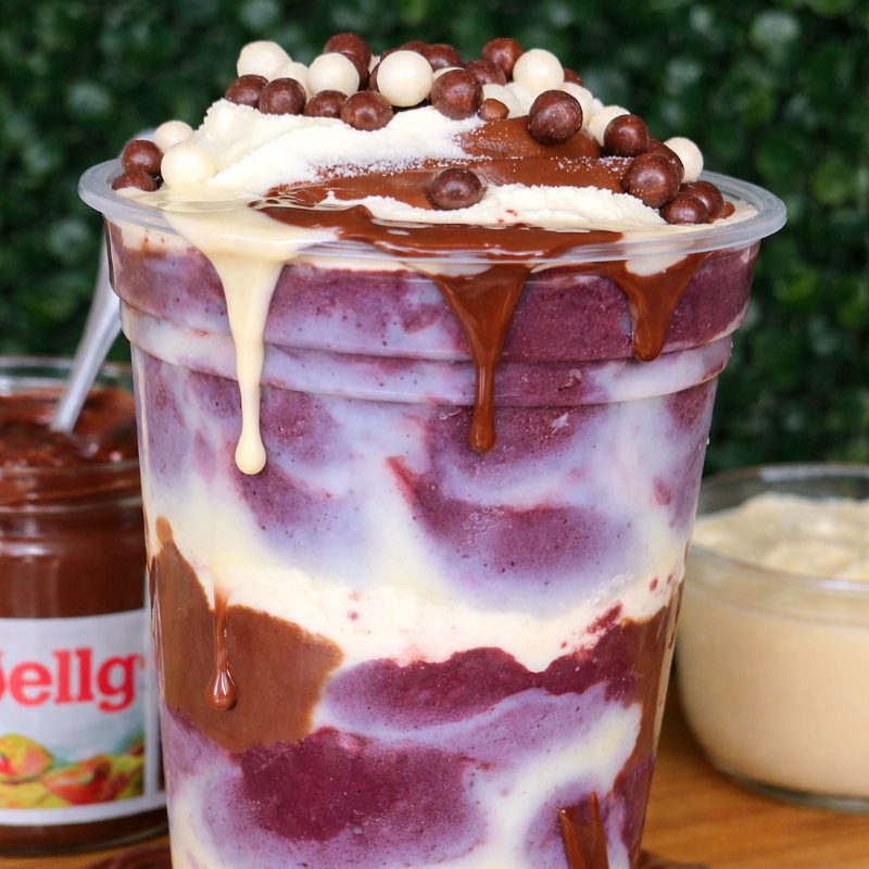 500mlaçaí De Morango + Leitinho E Creme De Avelã E Minibal