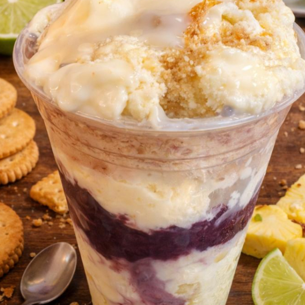 Sorvete De Abacaxi Em Calda Com Açaí E Leite Condensado