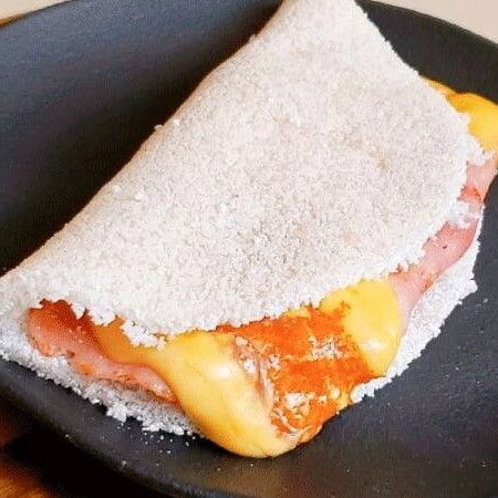 Nossa clássica tapioca, sempre branquinha e macia, preparada na hora. Recheada generosamente com fatias de presunto selecionadas e muita mussarela derretida que chega esticando. O equilíbrio perfeito para o seu lanche ou café da manhã.