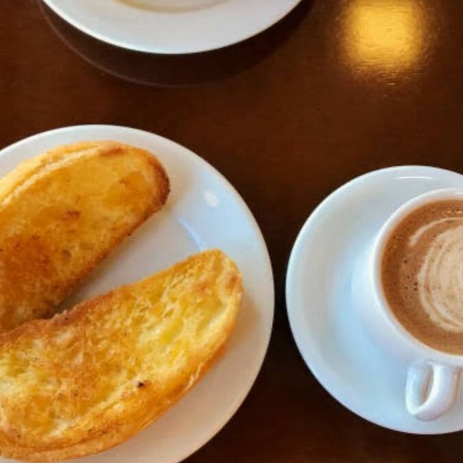 Pão francês fresquinho, crocante por fora e macio por dentro, passado na chapa com manteiga derretendo na medida certa. Acompanha café expresso quentinho, encorpado e aromático. A combinação clássica que não tem erro para começar bem o Dia