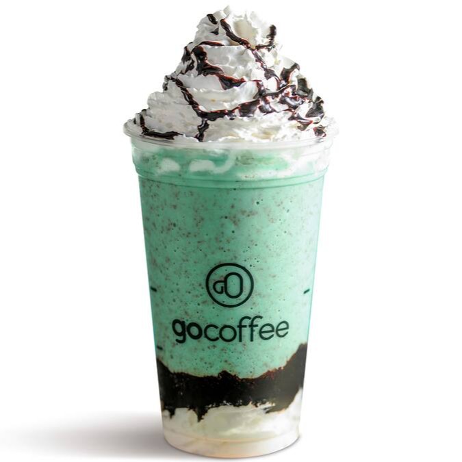 O frappe com 500ml que vai te deixar com gostinho de quero mais! Feito com base creme + xarope de menta, gotas de chocolate, leite, gelo, chantilly e cobertura.