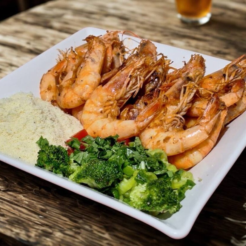 Servidos com uma fresca salada vinagrete, que equilibra o sabor marcante do camarão, e uma cremosa farofa dourada na manteiga de garrafa.