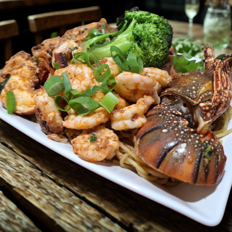 Spaghetti ao molho de tomate caseiro, preparado com ervas frescas e frutos do mar como: polvo macio, lagosta e camarões suculentos em uma combinação que une sabor, aroma e sofisticação em cada detalhe.