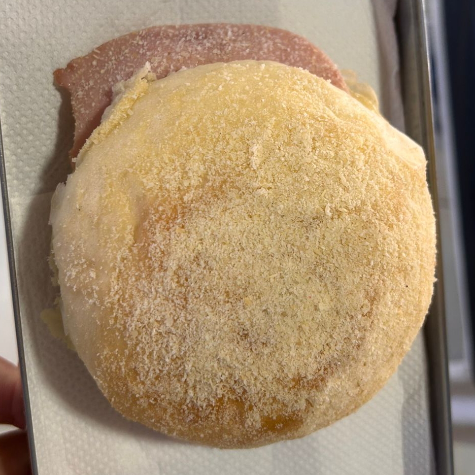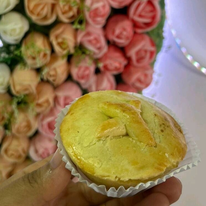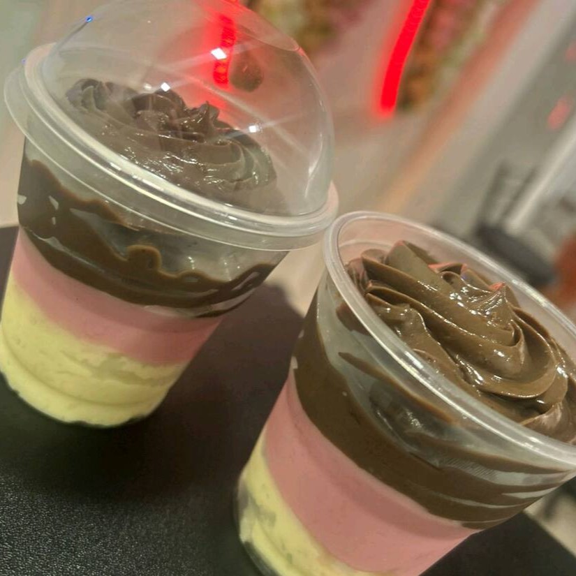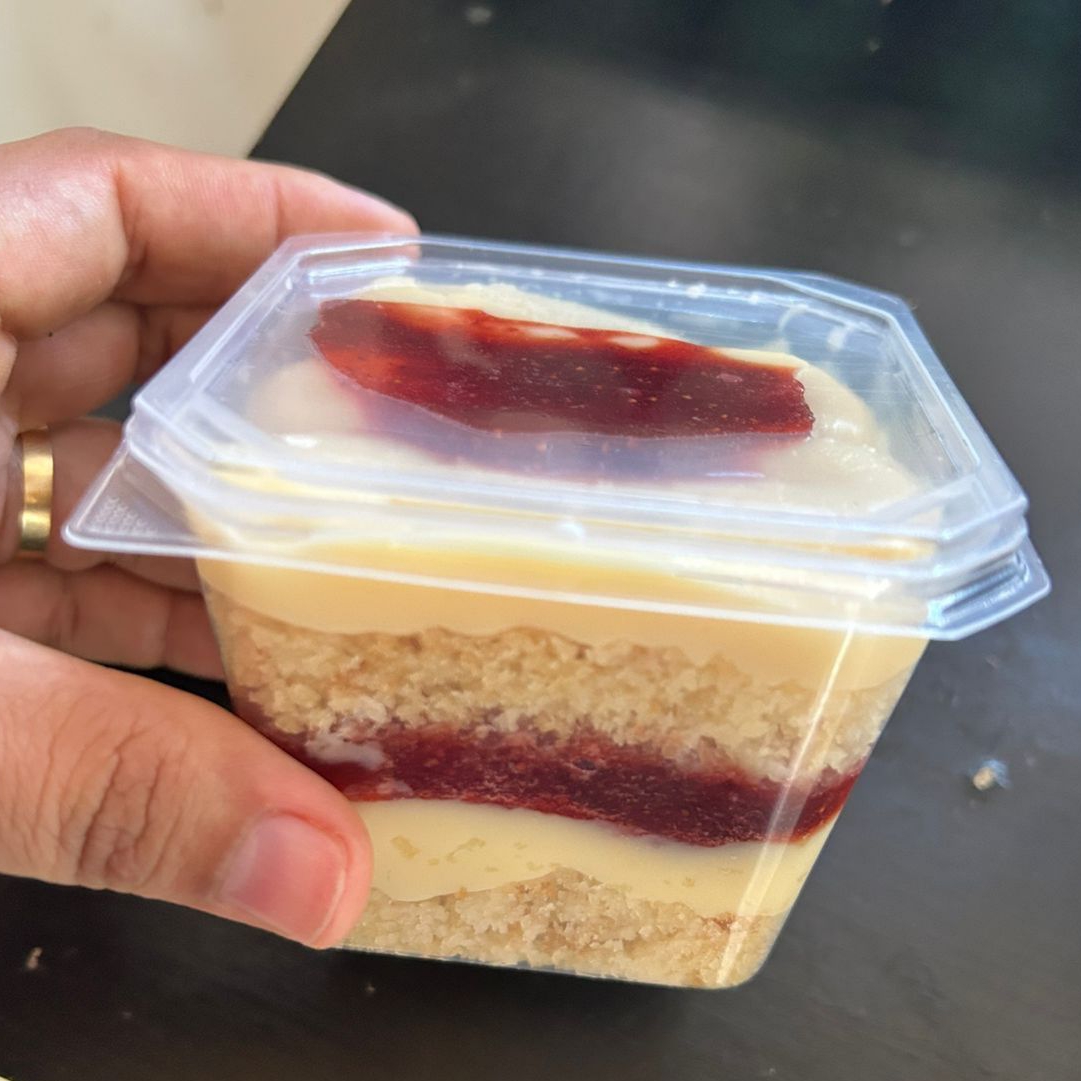 Massa branca, com recheio de leite em pó com geleia de morango.