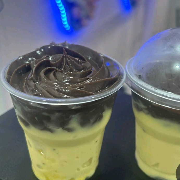 Mousse de maracujá da polpa sa fruta com chocolate 50% cacau.