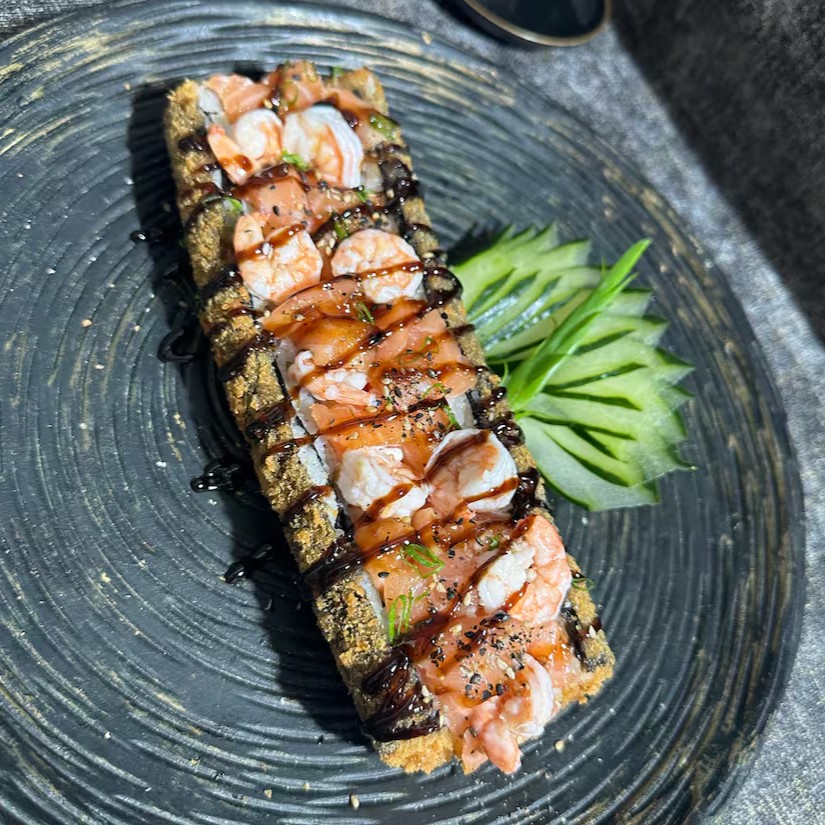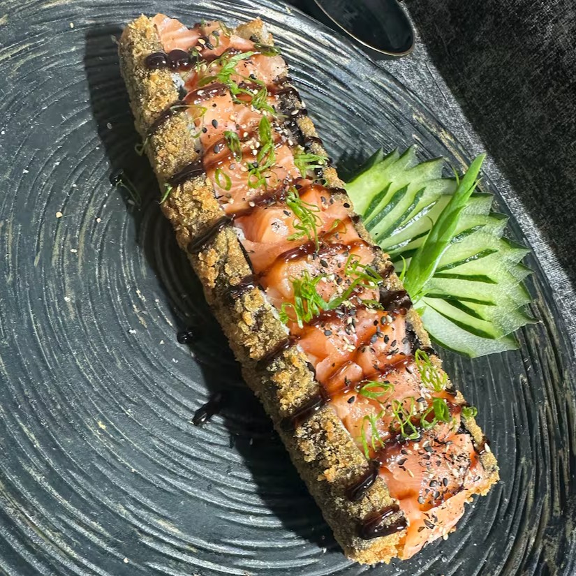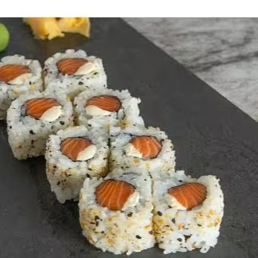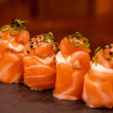 8 Diamond maki especial (lâmina de Salmão envolto no camarão com um toque de creme chesse e levemente Flambado)