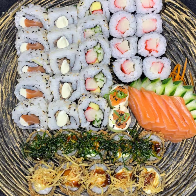 10 Sashimi De Salmão 5 Uramaki De Salmão 5 Uramaki Skin6 Joy kiure8 Shake maki8 Shake grelhado8 Rossomaki Kani com creme 30 Hot crispy(tradicional)