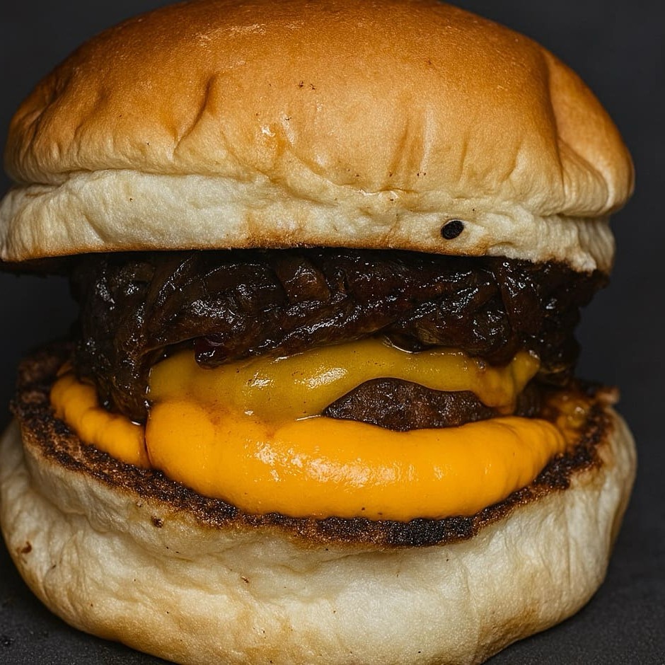 Pão brioche, 2 carne 70g, cheddar fatia, bacon fatia, cheddar cremoso, cebola caramelizada.