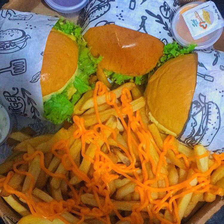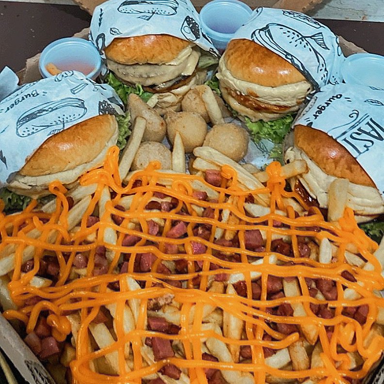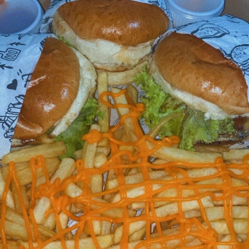 3x Burguer + batata cheddar + refri litro OBS: Coxinha só vendemos a porção separada do combo