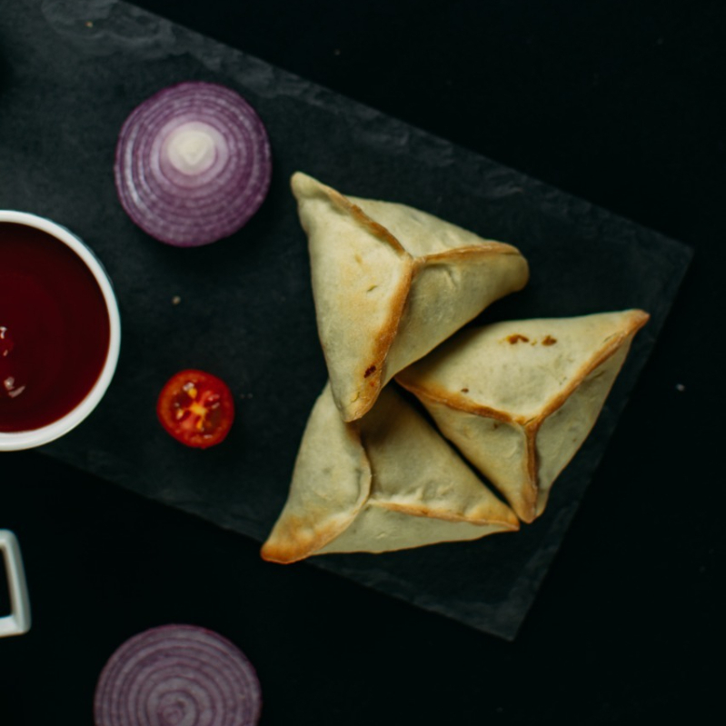 Esfiha Fechada de Frango, autêntica, feita a moda árabe, massa de pão sírio com um delicioso recheio de frango. De tamanho media, cerca de 60g.