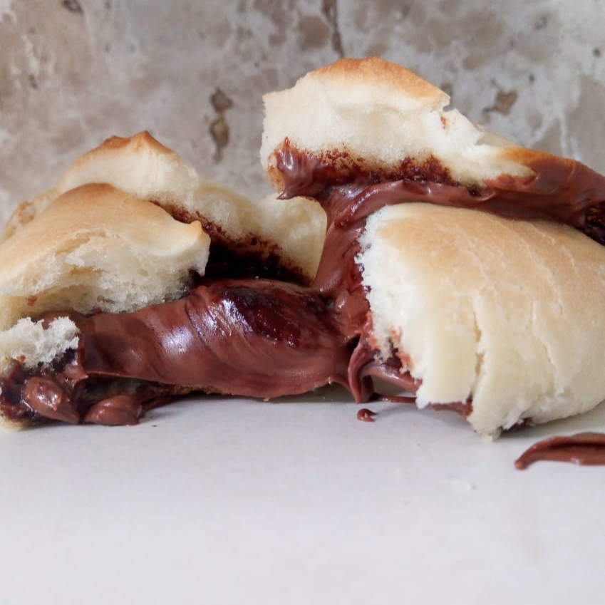 Esfiha Fechada de Nutella, autêntica, feita a moda árabe, massa de pão sírio recheada com muita Nutella Original. De tamanho media, cerca de 60g.