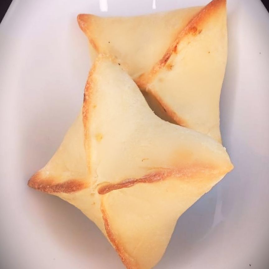 Esfiha Fechada de Queijo, autêntica, feita a moda árabe, massa de pão sírio com um delicioso recheio a base de ricota, mussarela e requeijão. De tamanho media, cerca de 60g.