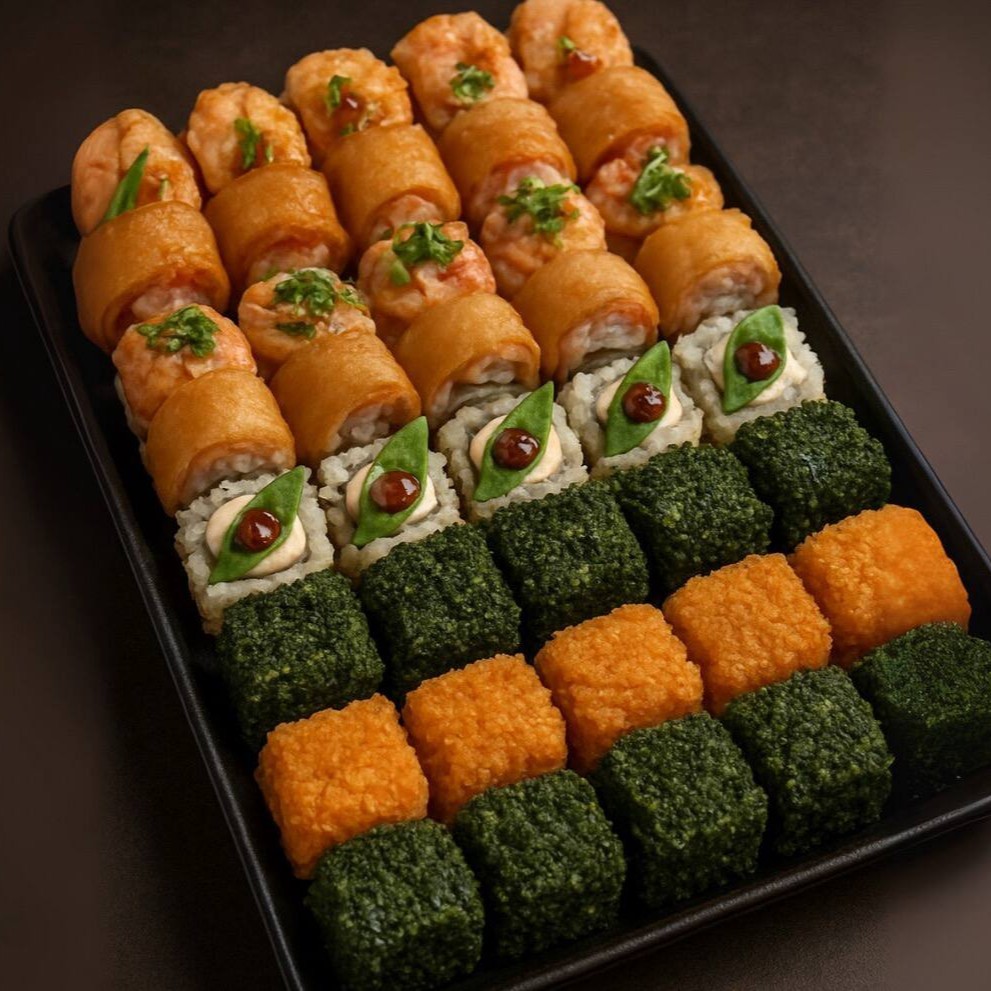 São 10 hot tradicional de kani, 10 hot especial de camarão, 10 hot shake couve, 05 hot Filadélfia, 05 hot uramaki empanado. Já acompanha par do hashi, molho teriyaki, molho shoyu e nozuk (molheira)