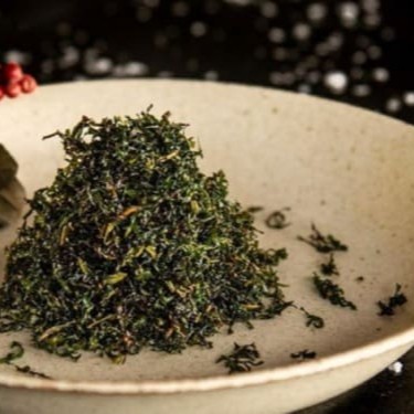 Temaki feito na alga com recheio de arroz com Salmão grelhado, gergelim e cebolinha